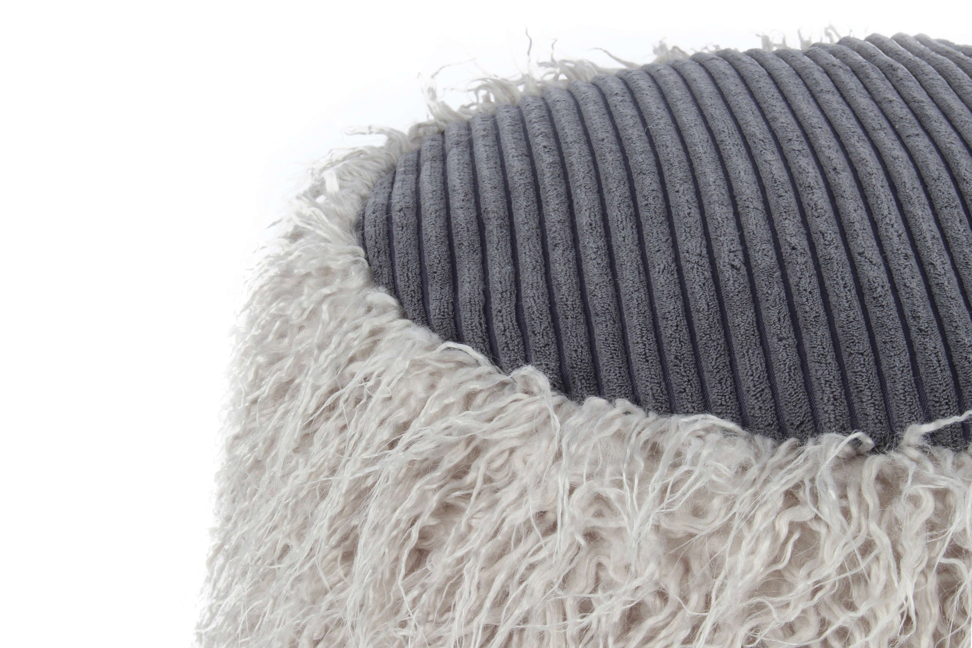 Diese alternative Sitzgelegenheit ist ein Hingucker in jedem Zimmer. Die robuste, farblich abgesetzte Cord-Sitzfläche fügt sich harmonisch in das plüschige Außenmaterial in Fell-Optik ein und macht den Pouf zu einem besonders dekorativen Einrichtungsgegenstand. Doch nicht nur optisch macht der Hocker etwas her. Als Sitzpouf bietet er angenehmen Komfort, der durch die Füllung aus Styroporkugeln erzielt wird. Die dichte Füllung bietet einen festen Sitz und ist gleichzeitig so flexibel, dass sie leicht nachgibt und für einen ideal angepassten Sitz sorgt. Belastet werden kann der Hocker mit einem Gewicht von bis zu 100 kg. Die Unterseite des Hockers ist mit einem kindersicheren Reißverschluss versehen, sodass die Füllung geschützt ist und die Styroporkugeln nur bei Bedarf zugänglich sind. Kreieren Sie mit dem kuscheligen Pouf Ihre ganz eigene Wohlfühlzone. In Kombination mit weichen Teppichen sowie passenden Möbeln und Dekoelementen erhalten Sie im Handumdrehen ein ganz neues Wohngefühl.Das Möbelstück kann in seiner tatsächlichen Farbgebung von den Bildern abweichen.
