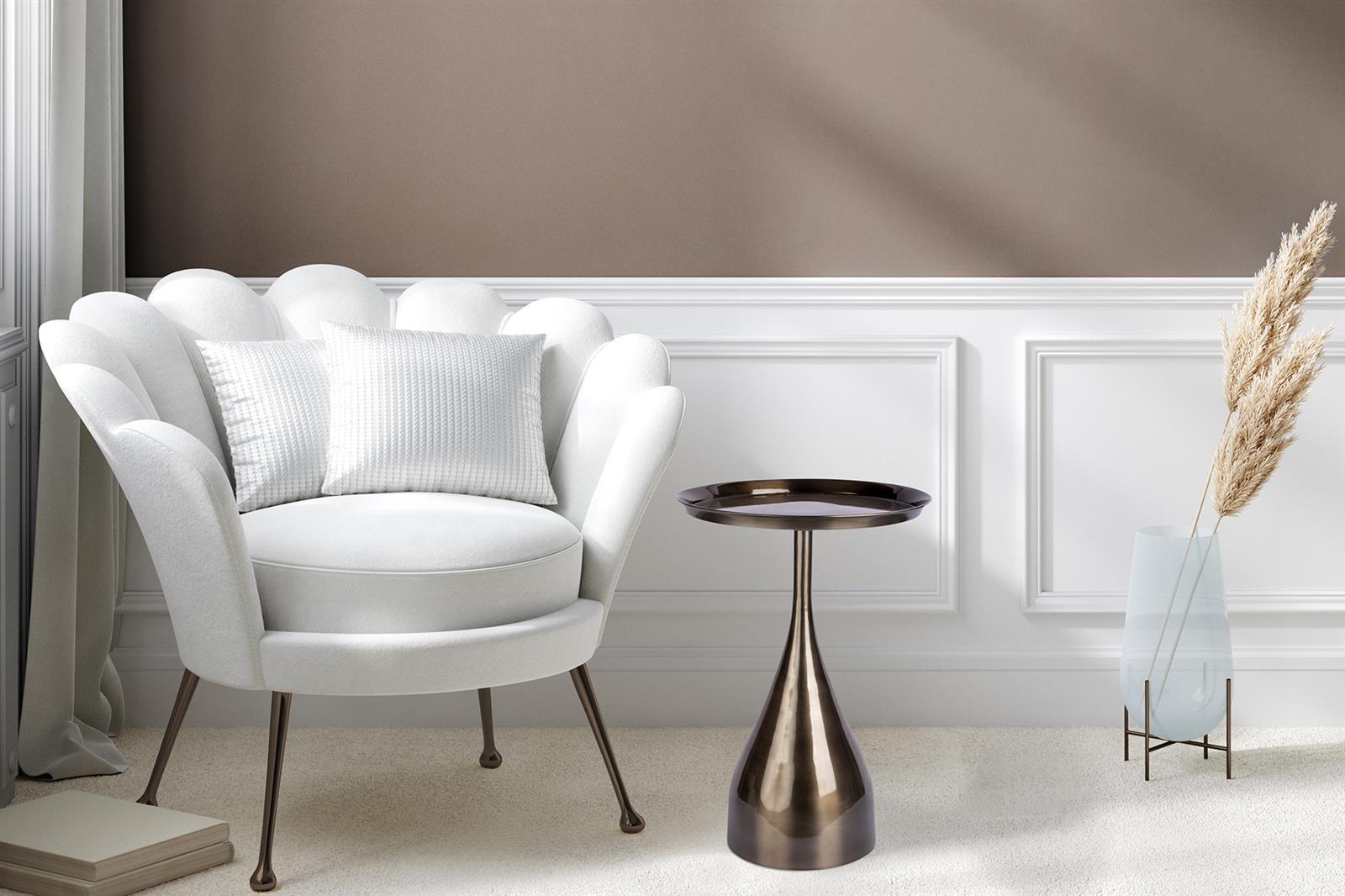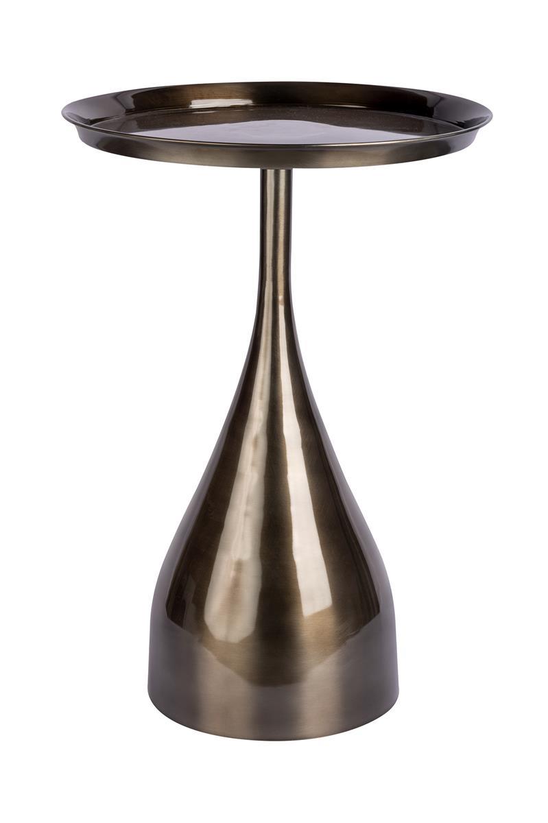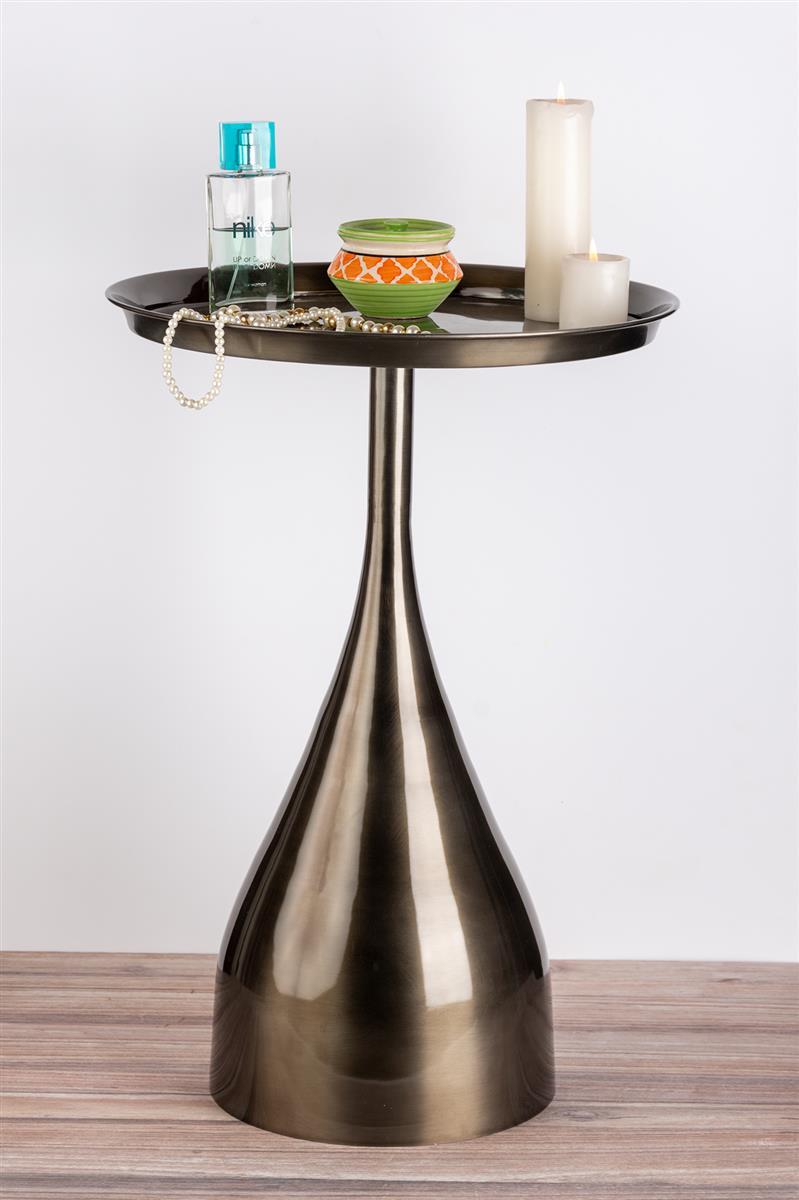 Dieser edle Beistelltisch ist ein absoluter Hingucker in jedem Zimmer. Das Metallgestellist in harmonischer Tropfenform gehalten und unterstreicht die weichen Züge der rundenTischplatte. Das extravagante Design kommt in den Farben Gold beziehungsweise Schwarz idealzur Geltung. Ein Handgefertigtes Unikat, das alle Blicke auf sich zieht - Perfekte Wahl für Individualisten!